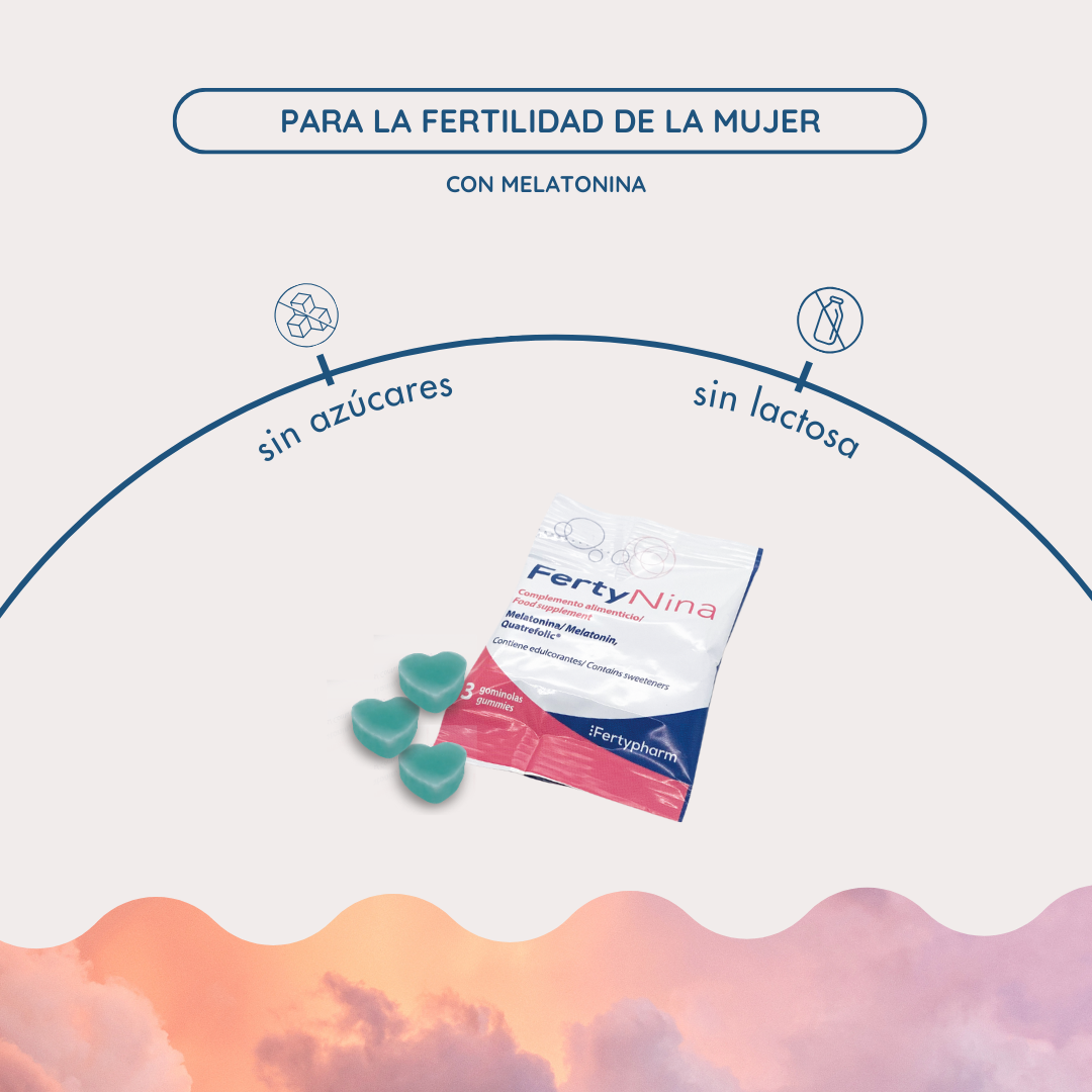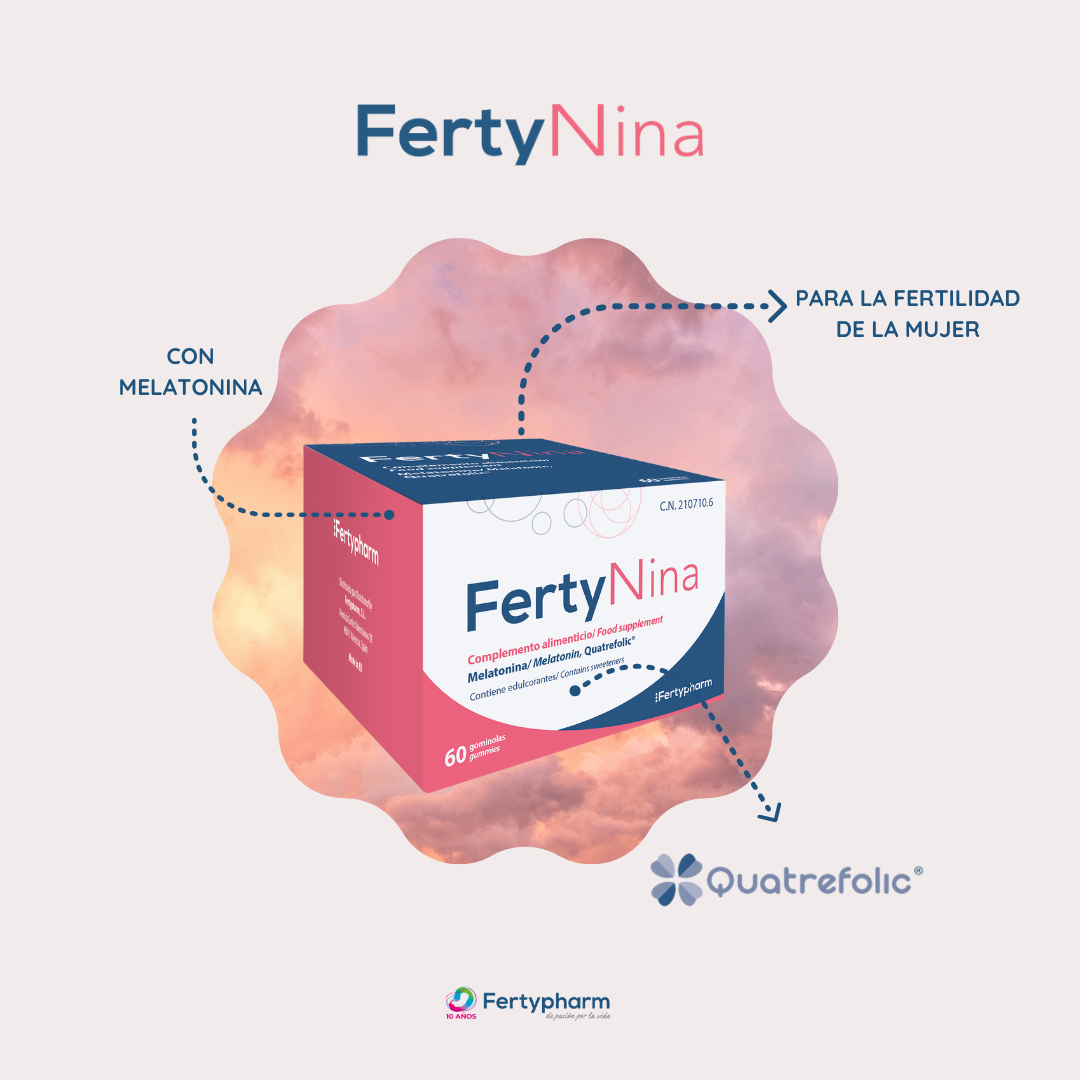 FertyNina es un complemento alimenticio que contiene melatonina y Quatrefolic® (forma activa de ácido fólico).
